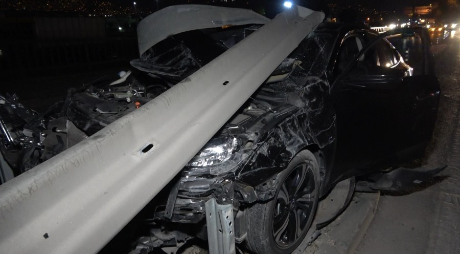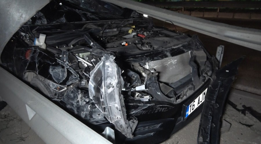Bursa'da otomobiliyle orta refüje çarpan sürücü aracını bırakıp olay yerinden kaçtı.
