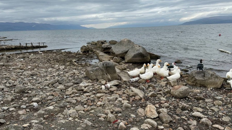 Marmara Bölgesi'nin en büyük gölü olan İznik Gölü'nde 10 yıl önce 2 metre derinlikte keşfedilen 2 bin yıllık bazilika, kuraklıkla birlikte artık tamamen su yüzeyine çıktı. Üzerinde ördeklerin gezdiği bazilika, dron ile havadan görüntülendi.