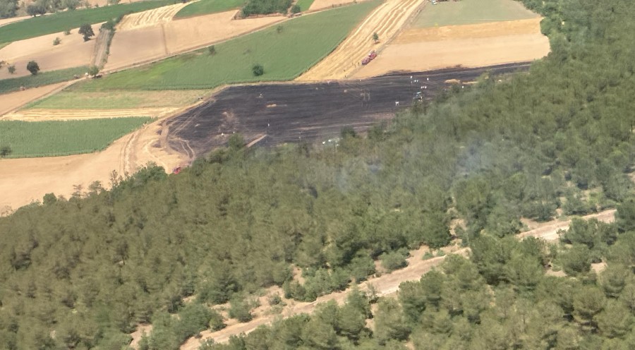 Bursa'nın Yenişehir ilçesinde anızların alev almasıyla 30 dönümlük arazideki buğday ve ormanlık alan küle döndü. Ekiplerin yoğun çalışması sonucu söndürülen alandaki soğutma çalışmaları devam ediyor.