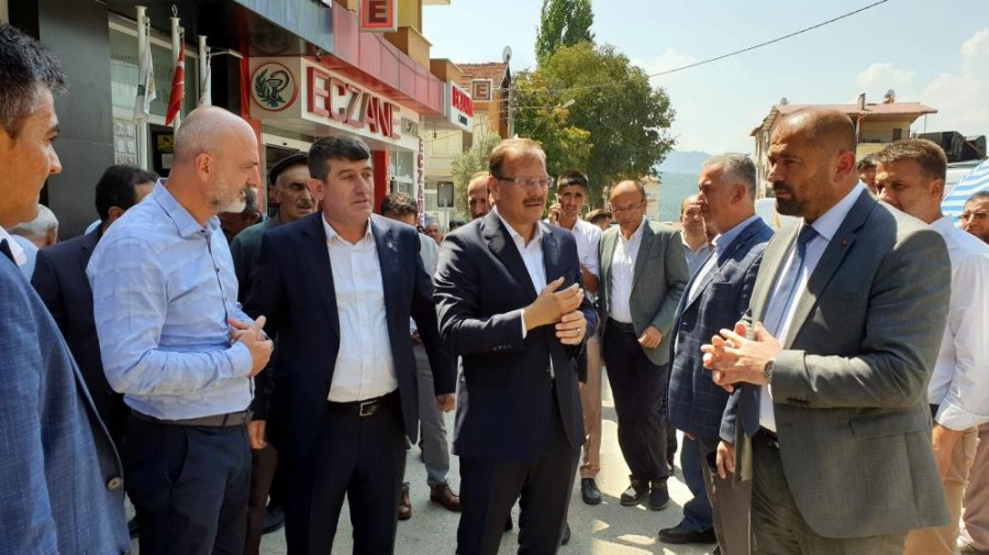 Beyce pazarında bir esnaf ilgi ve sevgisini gösterirken Çavuşoğlu'na kavun keserek ikramda bulundu. Program, gece yarısına kadar ilçe ve mahallelerinde devam etti.