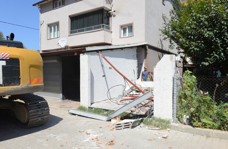 Ekiplerin yürüttüğü çalışmalar kapsamında, Akçalar Mahallesi'nde imara aykırı olduğu tespit edilen iki ayrı yapı için yasal süreç tamamlanarak yıkım kararı alındı. Bu doğrultuda harekete geçen ekipler, ilk olarak 1000 metrekarelik bir alana inşa edilmiş ve iş yeri olarak faaliyet gösteren kaçak yapının yıkımını gerçekleştirdi.