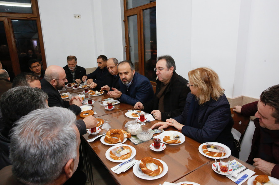 Büyükşehir Belediye Başkanı Alinur Aktaş, güne sabah namazı ile birlikte Nilüfer Fatih Sultan Mehmet Bulvarı'nda başladı. Sabah namazını Fatih Sultan Mehmet Camii'nde kılan Başkan Aktaş, daha sonra cami lokalinde kurulan bereket sofrasında vatandaşlarla buluştu. Bereket Sofrası Halk Günü etkinliğine Başkan Aktaş'ın yanı sıra AK Parti Nilüfer İlçe Başkanı Ufuk Ay, mahalle muhtarları, Büyükşehir Belediyesi bürokratları ve vatandaşlar katıldı. Simit, çay, peynir ve zeytinle yapılan kahvaltının ardından vatandaşlara hitap eden Başkan Aktaş, hem Bursa genelinde hem de Nilüfer özelinde yapılan ve yapılacak çalışmalar hakkında bilgi verdi.