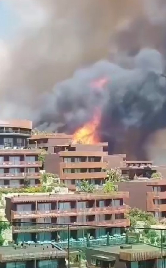 Ekipler canla başla yangını kontrol altına almaya çalışırken, yangın otellere yaklaştı.