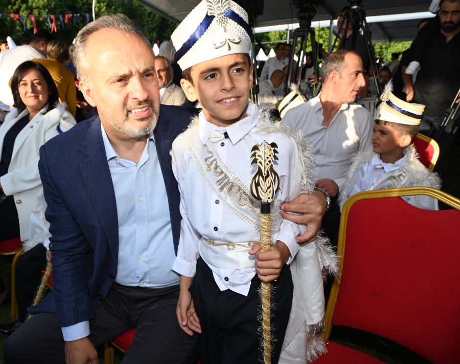Bursa Büyükşehir Belediyesi'nin geleneksel sünnet şöleninin dokuzuncusu, yoğun katılımla Merinos Park'ta gerçekleşti. Büyükşehir Belediye Başkanı Alinur Aktaş'ın da katıldığı şölende, 1000'den fazla çocuk erkekliğe ilk adımını attı.