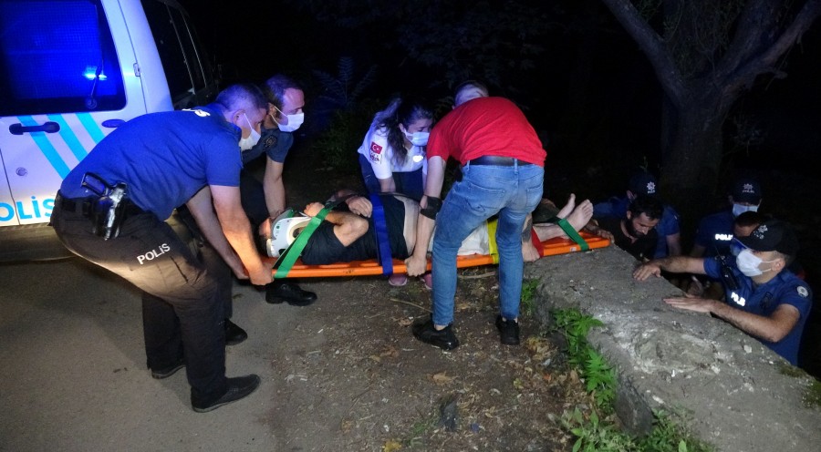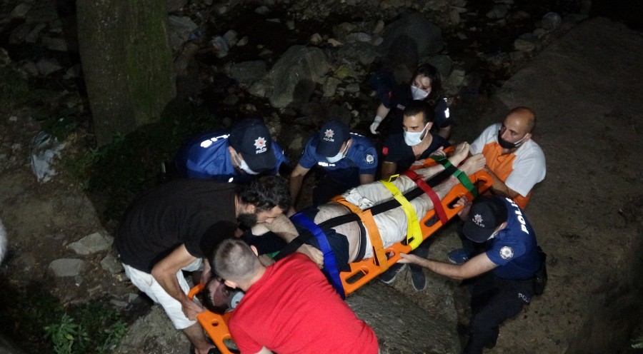 Bursa'da dere kenarında arkadaşlarıyla birlikte alkol aldığı sırada dengesini kaybederek dereye düşen Faruk Turan (40) ekipler tarafından kurtarıldı.