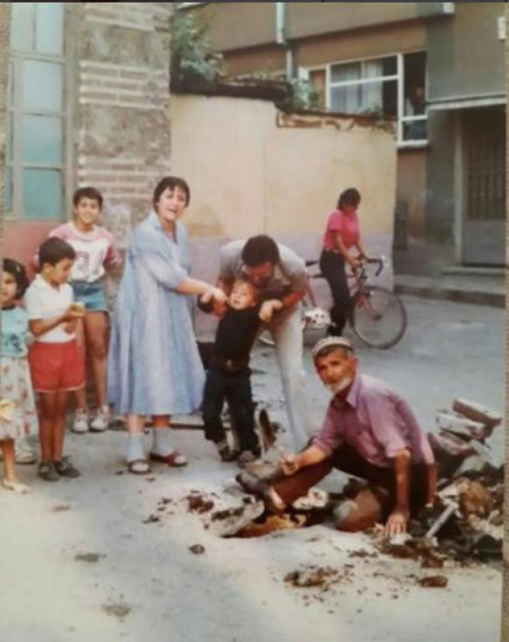 Demirer bu fotoğrafın altına"Bir genconun albümünden çıkmış benimle de paylaştı sağolsun... 80'ler Bursa'sı..Akbıyık Mahallesi... Cami duvarına yaslanıp sırıtan çocuktanıdık geldi mi" notunu düştü.