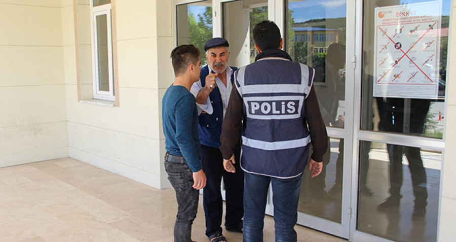 Sivas'ta Cumhuriyet Üniversitesinde düzenlenen LYS-2 Lisans Yerleştirme Sınavında 15 dakika kuralına takılan üniversite adayları sınava alınmadı. Sınava 1 dakika geç kaldığı için oğlu sınava alınmayan baba, salon görevlilerine yalvardı. Görevlilerle konuşan baba oğlu salona alınmayınca beddua ederek kapıyı yumrukladı. Sinir krizi geçirip gözyaşlarına boğulan babayı sınava giremeyen oğlu teselli ederek uzaklaştırdı.
