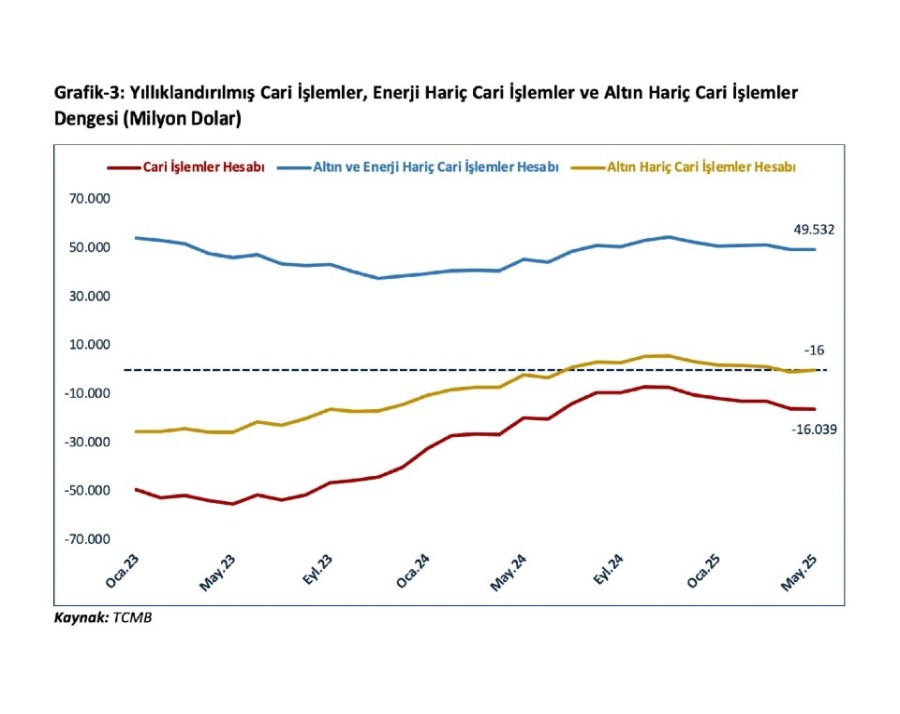 Cari işlemler hesabında ve dış ticarette dengelenme olduğuna dikkati çeken Bolat, "2024 yılı Mayıs ayında 591 milyon dolar olan cari işlemler açığı 2025 yılı Mayıs ayında 684 milyon dolar olarak gerçekleşmiştir. Böylece 2025 yılı ilk 5 ayında, Ocak Mayıs döneminde cari işlemler açığı 21 milyar dolar olmuştur. 2024 yılı Mayıs ayında 19,8 milyar dolar olan yıllıklandırılmış cari işlemler açığı 2025 yılı Mayıs ayında 16,0 milyar dolara gerilemiştir. 2025 yılı Mayıs ayında mal ihracatımız yüzde 2,6 oranında artışla 24,8 milyar dolara yükselirken, aynı dönemde ithalatımız yüzde 2,7 oranında artarak 31,5 milyar dolar olmuştur. Böylece tüm zamanların en yüksek aylık ihracatını gerçekleştirmiştik. Dış ticaret açığımız yüzde 2,7 artışla 6,6 milyar dolar ve ihracatın ithalatı karşılama oranı yüzde 78,9 olarak gerçekleşmiştir" ifadelerine yer verdi.