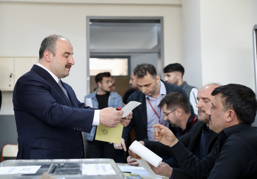 Sanayi ve Teknoloji Bakanı Mustafa Varank, Cumhurbaşkanı ve 28. Dönem Milletvekili Genel Seçimi için Bursa'nın Yıldırım ilçesinde, 6 Nisan Anadolu Lisesi'nde 2053 Nolu sandık başına geçti.