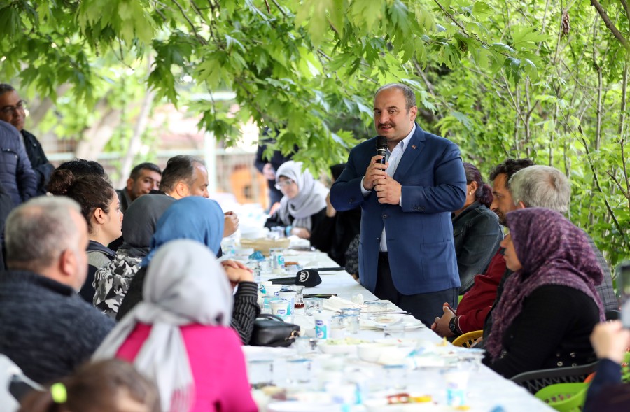 Bakan Varank, hükümet olarak bir numaralı gündem maddelerinin deprem bölgesi ve depremzedeler olduğunu vurgulayarak, konuşmasını şöyle sürdürdü: "Sizi asla yalnız bırakmayacağız. Biliyorsunuz ilk gün sayın Cumhurbaşkanımız bir söz verdi. Depremde yıkılan evleri bir yıl içerisinde teslim edilmesi üzerine de büyük bir gayretle temelleri attık. İnşallah seneye yeni evlerinizde sizin bereketli sofralarınıza konuk olacağız. Şu anda evlerin inşası devam ediyor ama sadece ev olarak bakmamak lazım. Bizim o bölgeyi tekrar ayağa kaldırabilmemizin yolu, ticaretin, ekonominin de ayağa kalkmasından geçiyor. Deprem bölgesindeki sanayi siteleri, sanayi tesisleri ve dükkanlarının yapılması, geçici çarşıların inşa edilmesi için bir gayretin içerisindeyiz.