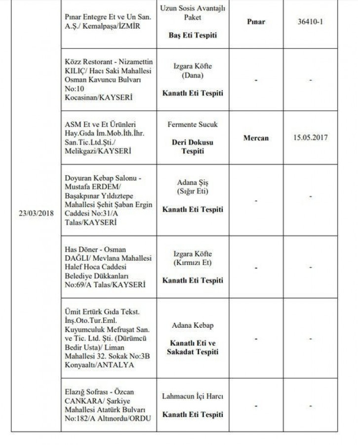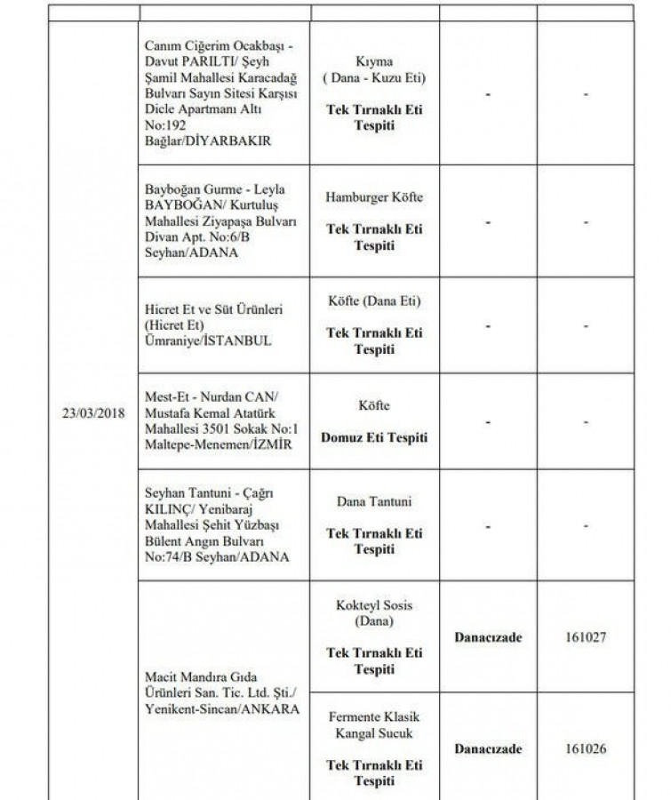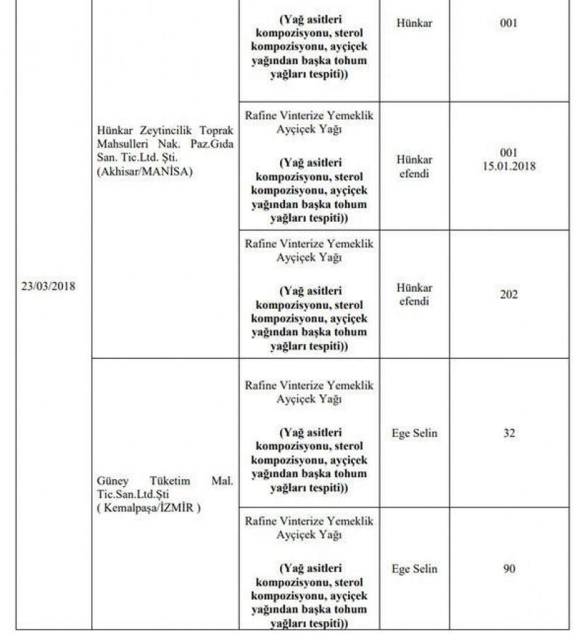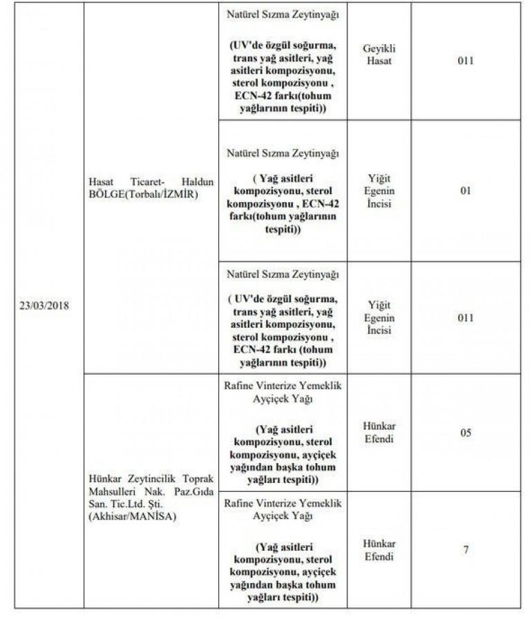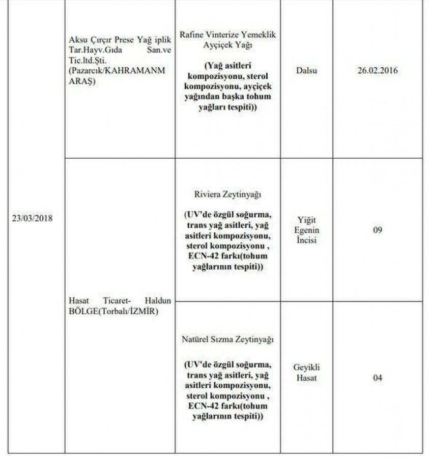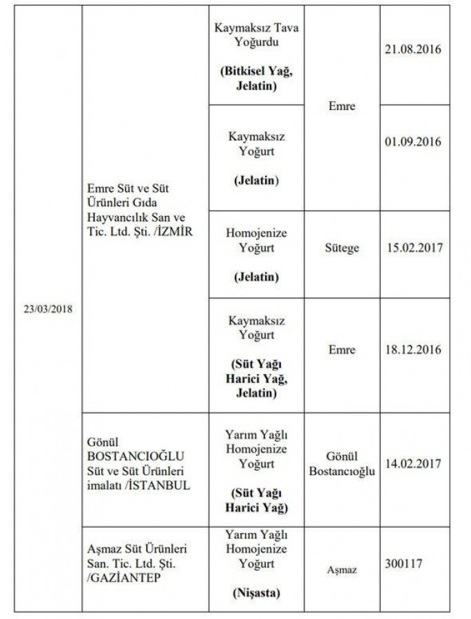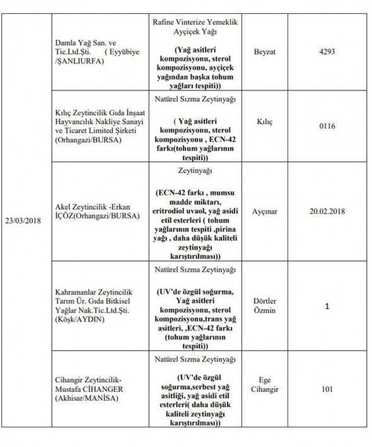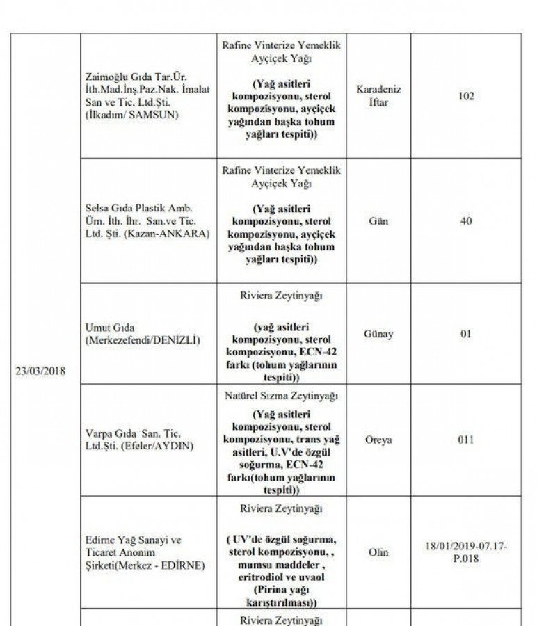 Gıda, Tarım ve Hayvancılık Bakanlığı tarafından, taklit veya tağşiş yapıldığı kesinleşen, aralarında et ve et ürünleri, süt ve süt ürünleri, bitkisel yağ, bal, takviye edici gıdalar, çikolata ve enerji içeceğinin yer aldığı 173 firmaya ait 282 parti ürün kamuoyuna açıklandı.