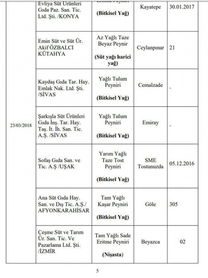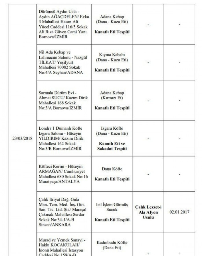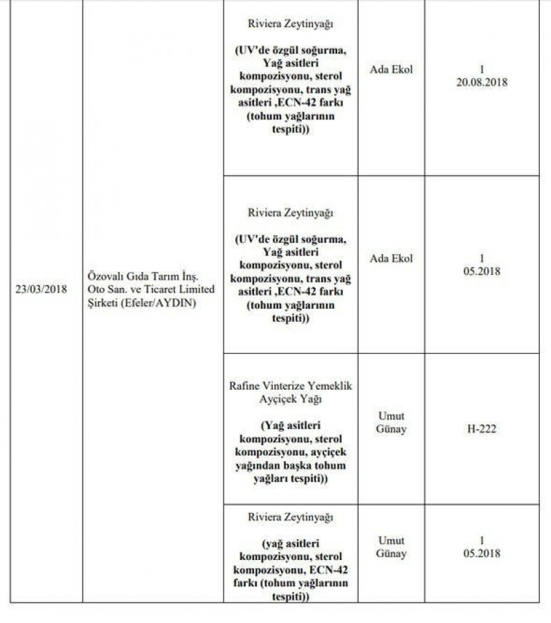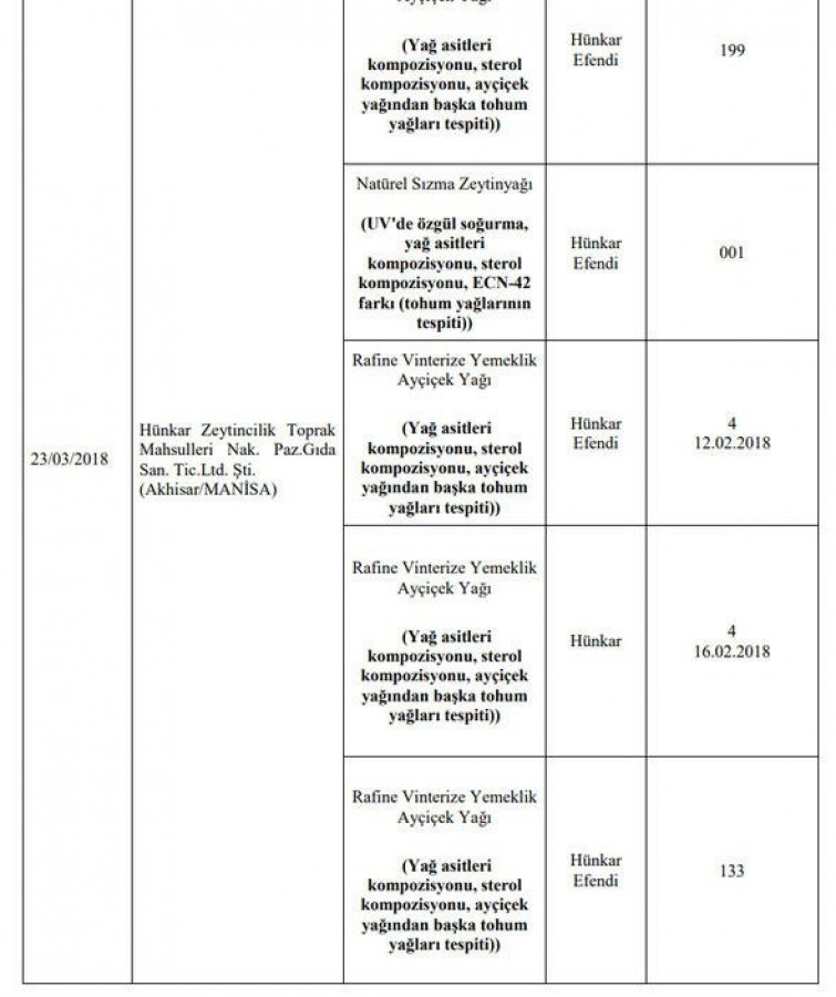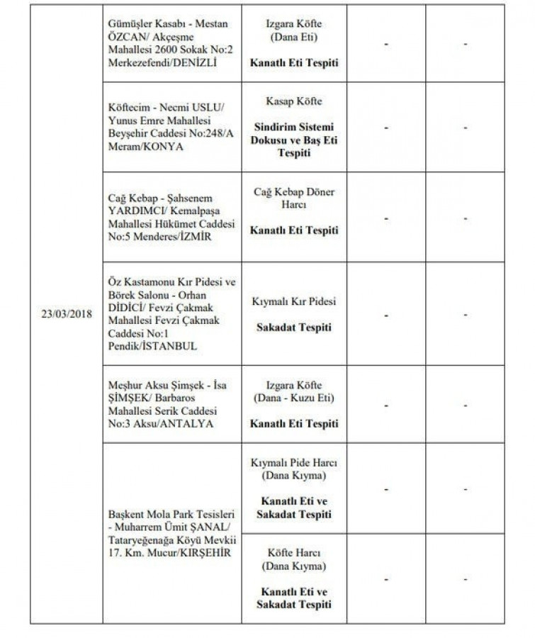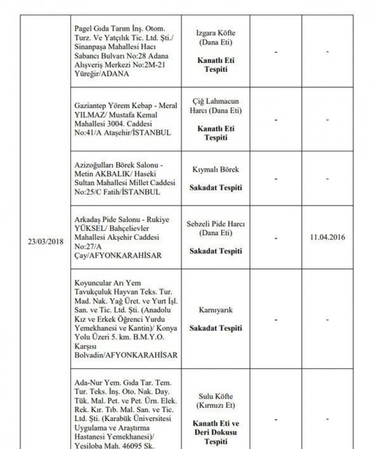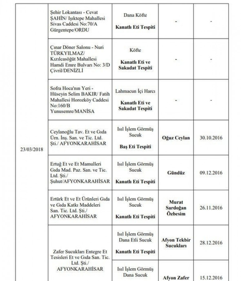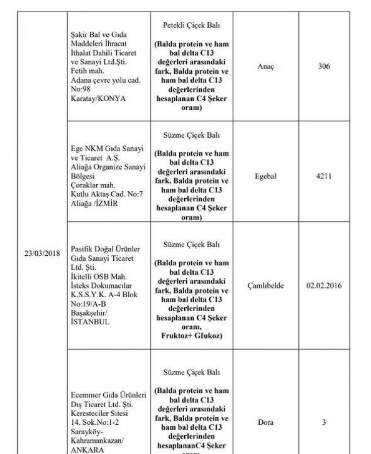Gıda, Tarım ve Hayvancılık Bakanlığı tarafından, taklit veya tağşiş yapıldığı kesinleşen, aralarında et ve et ürünleri, süt ve süt ürünleri, bitkisel yağ, bal, takviye edici gıdalar, çikolata ve enerji içeceğinin yer aldığı 173 firmaya ait 282 parti ürün kamuoyuna açıklandı.