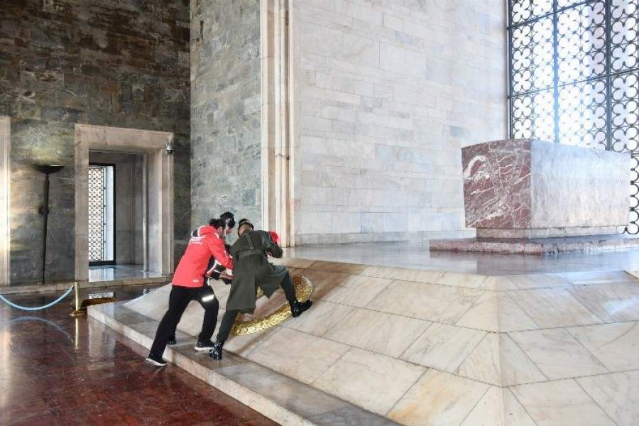 Anıtkabir'de bulunan Aslanlı Yolda başlayan yürüyüş, mozoleye çelenk bırakılması, saygı duruşu ve İstiklal Marşı ile devam etti.