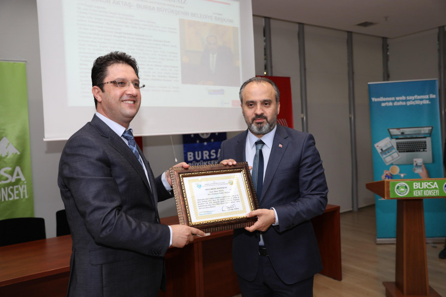 Programın sonunda Basın İlan Kurumu Bursa Şube Müdürü Osman Başeğmez, katkıları nedeniyle Başkan Aktaş'a 'adına dikilen fidanların sertifikasını' takdim etti.
