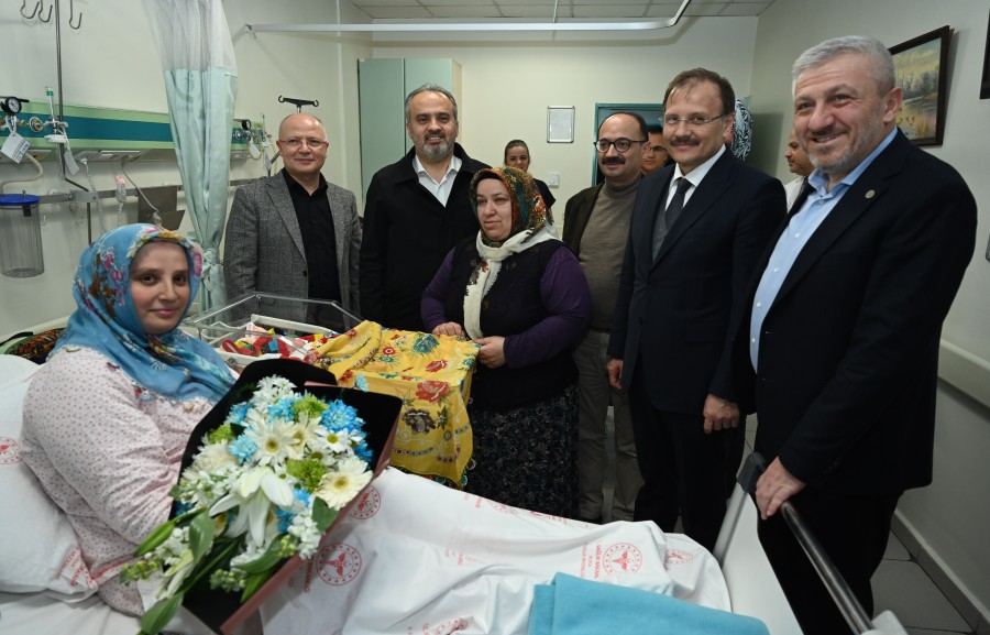 Başkan Aktaş, 2022'nin son ve 2023'ün ilk ziyaretini ise Yüksek İhtisas Kadın Doğum ve Çocuk Hastanesi'ne yaptı. Başkan Aktaş ve beraberindeki Bursa Milletvekilleri Hakan Çavuşoğlu ve Osman Mesten, Yıldırım Belediye Başkanı Oktay Yılmaz, İl Sağlık Müdürü Fevzi Yavuzyılmaz ile AK Parti İl Başkanı Davut Gürkan, ilk çocukları 2022 yılının doğan son bebeği olarak kayıtlara geçen Hasret ve Mert Bilal Şahir çiftini ziyaret etti.