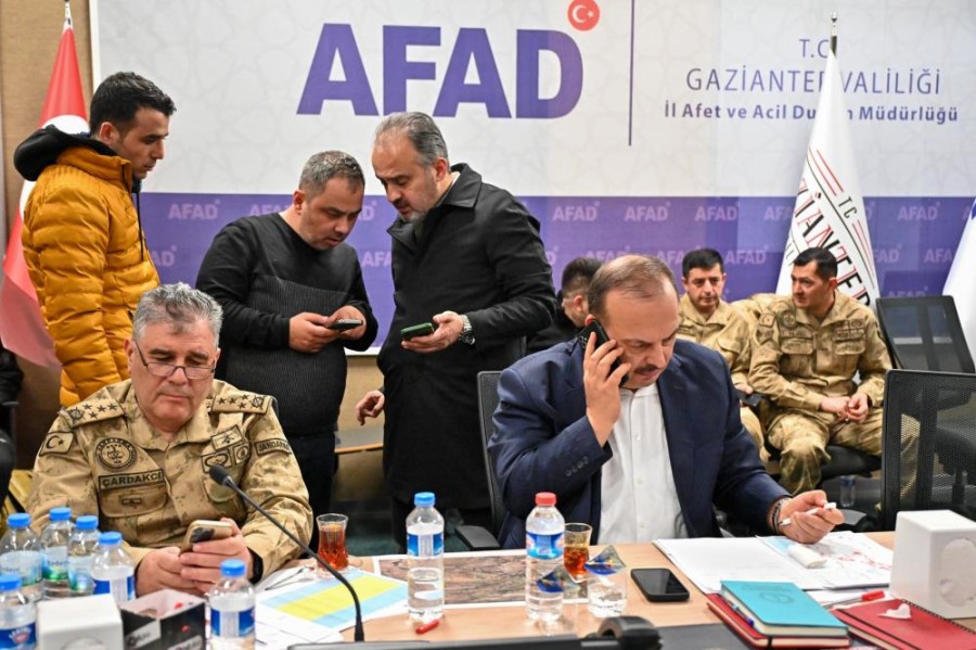 İçişleri Bakanlığı tarafından Gaziantep'te koordinasyonla görevlendirilen Bursa Valisi Yakup Canbolat ile Büyükşehir Belediye Başkanı Alinur Aktaş, AFAD Kriz Merkezi'nde hem arama kurtarma hem de yardım ile destek faaliyetlerini organize ediyor. İslahiye ve Nurdağı ilçelerinin koordinasyonunu üstlenen Büyükşehir Belediye Başkanı Alinur Aktaş, iki ilçeyi gezip çalışmaları yerinde inceledi. Burfaş'ın mobil mutfağında afetzedelere çorba ikram eden Başkan Aktaş, depremden kurtulan vatandaşlarla sohbet edip sorunlarını dinledi. Yaşanan afetin Erzincan'dan sonra Cumhuriyet tarihinin en büyük depremi olarak nitelendirildiğini hatırlatan Başkan Aktaş, "Bana göre, en büyük deprem bu. Çünkü 10 tane il etkilendi. Bu illerden 7 tanesi büyükşehir çerçevesinde. Ciddi nüfusu, ciddi bir coğrafyayı etkiledi. Çok uzun süren, peş peşe iki deprem. Büyük afet. Dolayısıyla etki alanı çok fazla" diye konuştu.