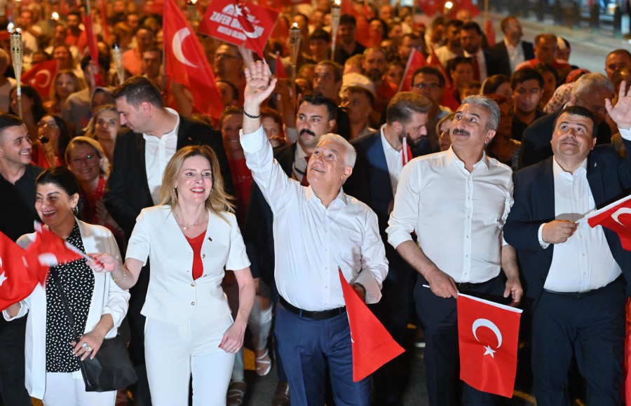 30 Ağustos Zafer Bayramı'nın 102'inci yıldönümü, tüm yurtta olduğu gibi Bursa'da da büyük bir coşkuyla kutlandı. Gündüz etkinlerinin ardından binlerce Bursalı, Bursa Büyükşehir Belediyesi tarafından 'Hepimizin Zaferi' sloganıyla düzenlenen fener alayı yürüyüşüne katılmak üzere Tarihi Belediye Binası önünde toplandı. Yürüyüşe Bursa Büyükşehir Belediye Başkanı Mustafa Bozbey ve eşi Seden Bozbey'in yanı sıra Bursa Milletvekilleri Hasan Öztürk, Kayıhan Pala, Orhan Sarıbal, CHP İl Başkanı Nihat Yeşiltaş, Bursa Kent Konseyi Başkanı Prof. Dr. Ertuğrul Aksoy, ilçe belediye başkanları, Büyükşehir Belediyesi genel sekreter yardımcıları, daire başkanları ve bürokratları da katıldı. Atatürk Caddesi'ni baştan sona dolduran binlerce kişi, ellerindeki fenerler ve Türk bayrakları ile 30 Ağustos Zafer Bayramı coşkusunu yaşamak için Altıparmak Atatürk Stadyumu alanına kadar marşlar eşliğinde yürüdü. Ellerindeki fener ve pankartlarla omuz omuza yürüyen binlerce kişi, Bursa'da uzun yıllardır görülmemiş bir manzaraya imza attı.