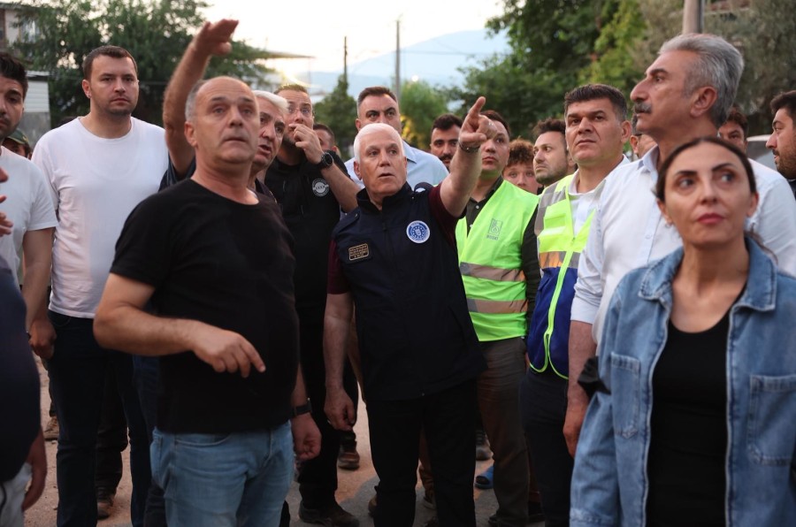 Başkan Mustafa Bozbey, daha sonra alandaki AKOM aracına geçerek çalışmalar ve son durum hakkında ekiplerden bilgi aldı.