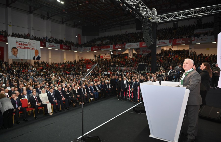Cumhurbaşkanlığı yarışı için CHP'nin ön seçim yarışına katılan Ekrem İmamoğlu'nun Cengiz Göllü Voleybol Salonu'nda düzenlenen 'Bursa Buluşması' programına binlerce vatandaş katıldı. Hep birlikte tarihe tanıklık ettiklerini ve Bursa olarak Türkiye'ye güçlü bir mesaj verdiklerini belirten Başkan Mustafa Bozbey, oluşan tablonun Türkiye'nin demokrasiye, adalete ve eşitliğe olan özleminin en net göstergesi olduğunu söyledi. "Hep birlikte daha güzel, daha adil, daha eşit bir Türkiye'yi inşa edeceğiz" diyen Başkan Bozbey, "Hepimizin tek bir görevi var: Cumhuriyetimizi yeniden aydınlık günlere kavuşturmak. Demokrasiyi ve adaleti yeniden egemen kılmak. Ülkemizin kurucusu, Ulu Önderimiz Gazi Mustafa Kemal Atatürk'ün emanetine sahip çıkmak" dedi.