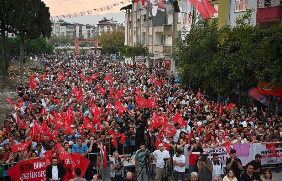 CHP Genel Başkanı Özgür Özel ile birlikte Hatay'ın Defne ilçesine giderek halk buluşmasına katılan Bursa Büyükşehir Belediye Başkanı Mustafa Bozbey, "Ulu Cami'yi haziran 2026'da bitirip, inşallah hep beraber orada cuma namazı kılınacak hale getireceğiz. Bu da Hatay halkına sözümüz olsun" dedi.