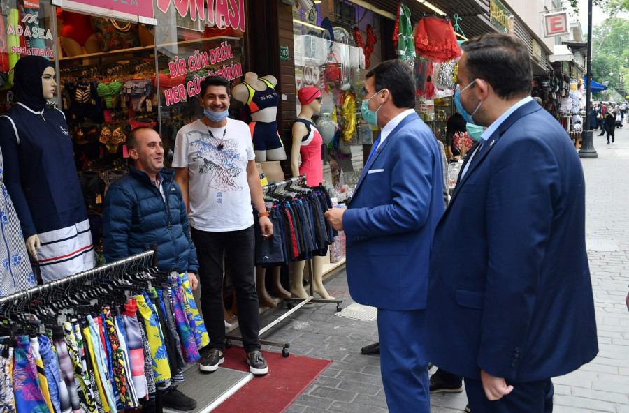 Osmangazi Belediye Başkanı Mustafa Dündar, yeni normalleşme ile birlikte dükkanlarını açan esnafı ziyaret ederek destek veriyor.
