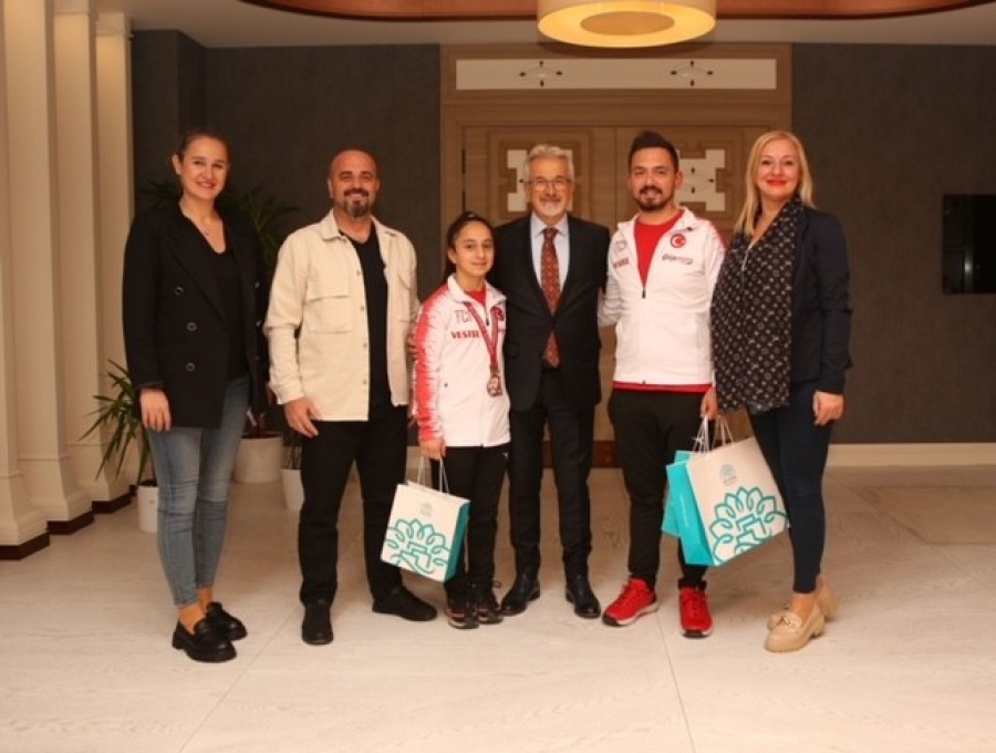 Nilüfer Belediye Başkanı Turgay Erdem, yer aldığı milli takım, İstanbul'da bronz madalya alan Nilüfer Belediyesporlu cimnastikçi İrem Karabalık ve ödüllerine yenisini ekleyen veteran atlet Murat Kaçar ile bir araya gelerek başarılarından dolayı kutladı.