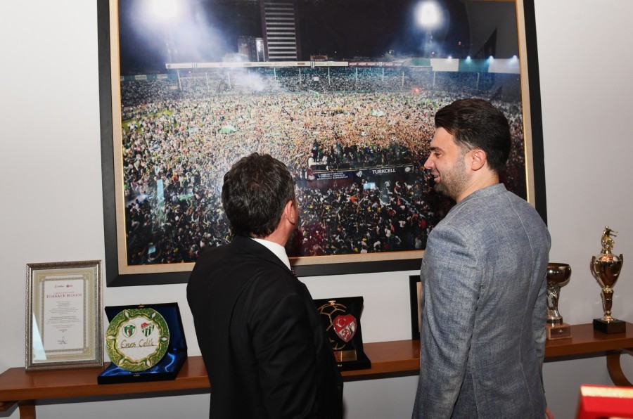 Osmangazi Belediye Başkanı Erkan Aydın, Bursaspor Başkanı Enes Çelik'i ziyaret etti.