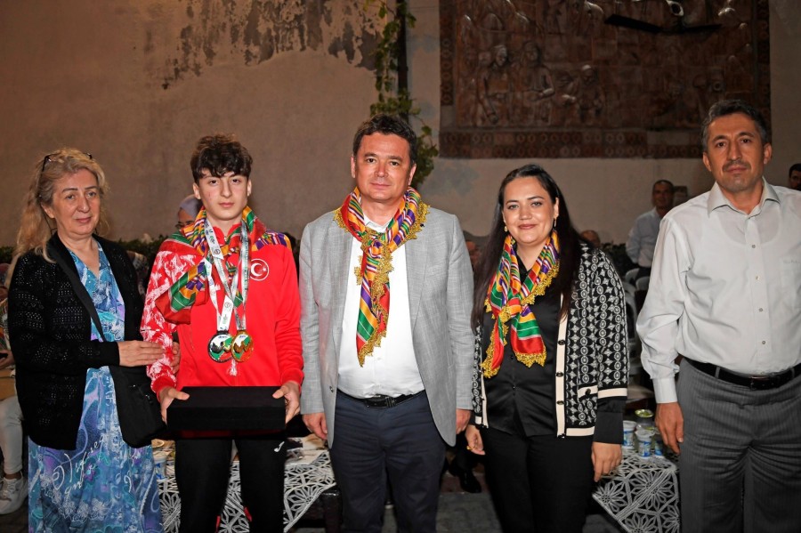 Gecenin sonunda Osmangazi Belediye Başkanı Erkan Aydın ve DAĞDER Genel Başkanı Derya Kaya Başak, Dünya Bilek Güreşi Şampiyonasında Milli formayla mücadele ederek sol kolda tüm rakiplerini eleyip dünya şampiyonu olmayı başaran ve dağ yöresine büyük gurur yaşatan Berat Demir'e plaket vererek tebrik etti.