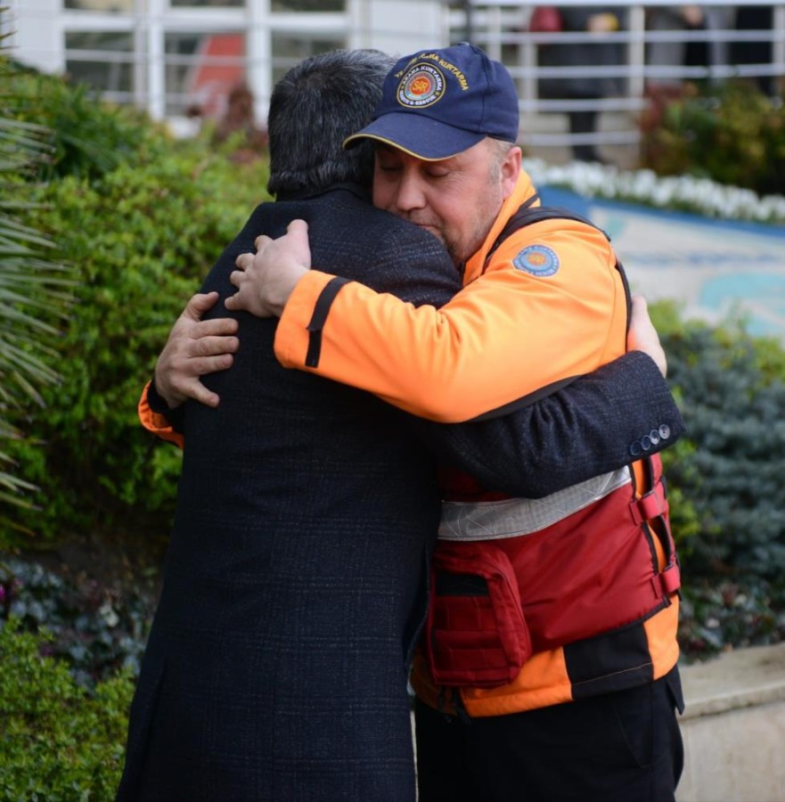 14 gün boyunca gerçekleştirdikleri özverili çalışmalarla birçok vatandaşı kurtaran Yıldırım Arama Kurtarma Ekibi'ni Bursa dönüşünde Yıldırım Belediye Başkanı Oktay Yılmaz ve belediye personeli karşıladı.
