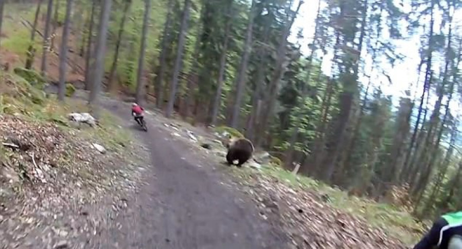 Slovenya, Malino Brdo bölgesinde bulunan dağ bisikleti parkurunda sürüş yapan bisikletçilerin karşısına aniden ayı çıktı. Önden giden bisikletçinin peşinden koşan ayı arkadan gelen diğer bisikletçi Dusan Vinzik'in kask kamerasından görüntülendi. Bisikletçileri bir süre kovalayan ayı, tekrardan ormanın derinliklerine kaçarak gözden kayboldu. Bisikletçiler korkutan olaydan yara almadan kurtuldu.