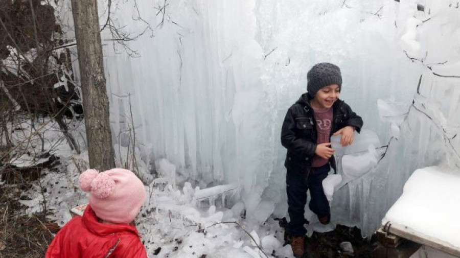 Patlamanın etkisiyle su borusundan fışkıran su buz tuttu. Ağaç dallarının da etkisiyle buz tutan su ilginç görüntüler oluşturdu. Buz kütlesini görenler ise şaşkınlıklarını gizleyemedi.
