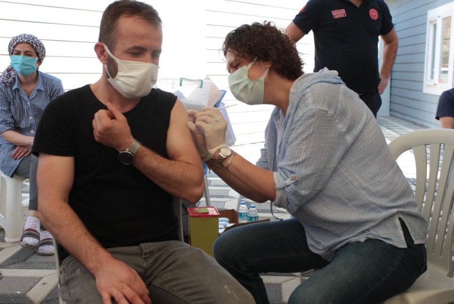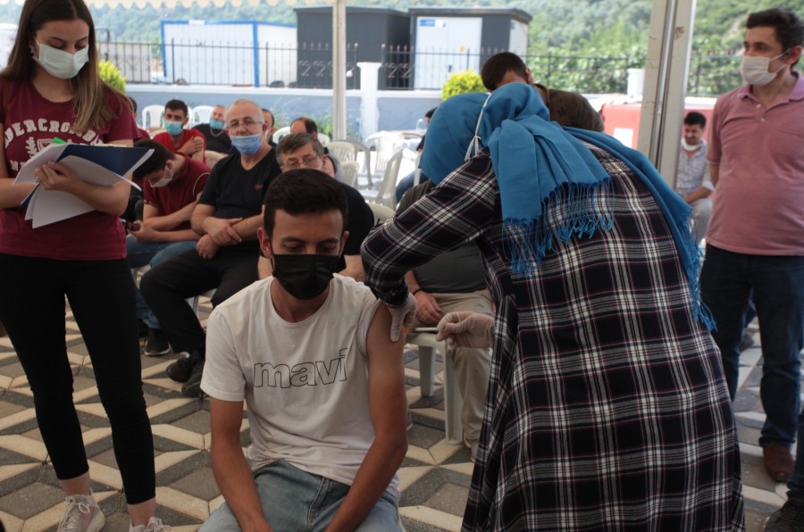 Sağlık Bakanlığı tarafından üretimin devamlılığı ve güvenliği için organize sanayi bölgelerinde mobil ekiplerle yerinde aşı uygulamasına başlandı. Barakfakih Organize Sanayi Bölgesi'nde bin çalışan aşılandı.