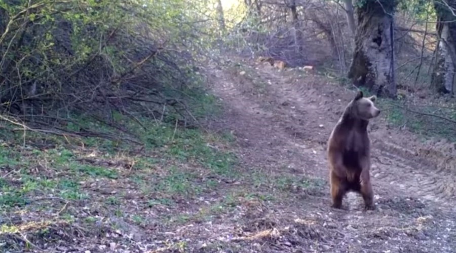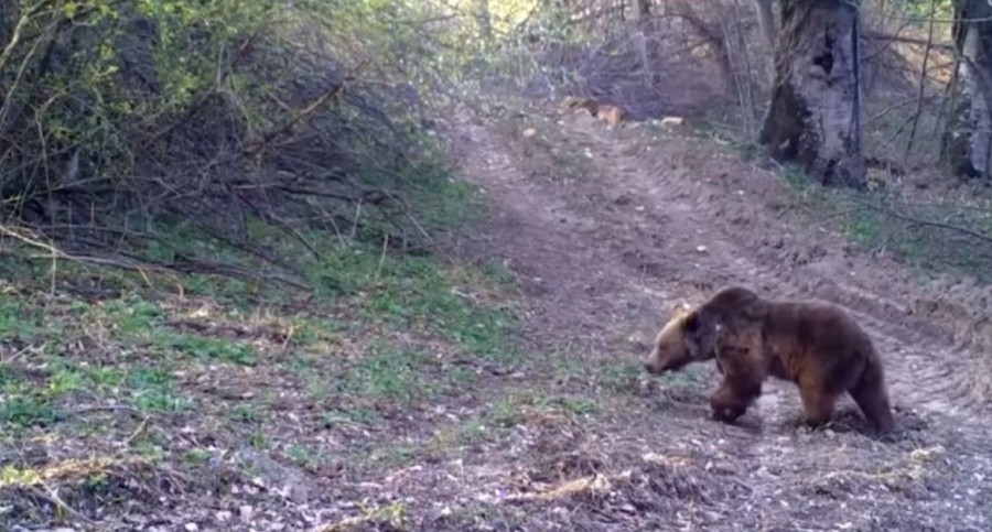 Yaban hayvanlarının yaşam alanlarına konulan fotokapan doğanın gizemli koridorlarında yürüyen ayı ve yavrusunu görüntülendi.