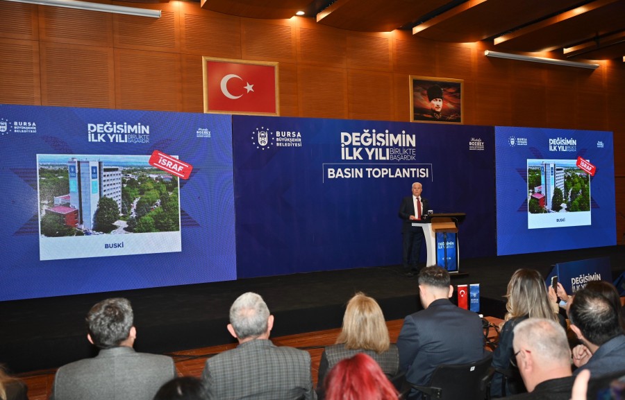 Ayrımcılık, yetki gaspı ve çifte standart konularından da örnekler sunan Başkan Bozbey, Göynükbelen Gençlik ve Spor Kamp Merkezi'nin ve Havuzlupark Spor Tesisi'nin Gençlik ve Spor İl Müdürlüğü'ne tahsis edildiğini anlattı. Uludağ Üniversitesi Görükle Gençlik Merkezi'nin Rektörlük tarafından Büyükşehir Belediyesi'ne protokolle devrini beklediklerini söyleyen Başkan Bozbey, Tahir Ağa Hamamı, Bayezid Paşa Medresesi ve Darphanenin de Vakıflar'a devredildiğini dile getirdi. 50'dan fazla eserin de birçok derneğe, vakıfa ve bazı kurumlara verildiğini tespit ettiklerini anlattı. Geçmişte belediye kaynaklarının siyasete sponsor olarak kullandığını söyleyen Başkan Bozbey, "Büyükşehir Belediyesi göreve geldiğimizde borç batağındaydı. Nisan'da 27.3 milyar lira borç sanıyorduk. Meğer borç 31.8 milyar liraymış. Bir yılda Büyükşehir'in borcunda yüzde 15 düşüş sağladık. Bunu etkin, denetimli, açık ve şeffaf ihalelerle yaptık. İştiraklerin borcunu yüzde 19 azalttık. Ancak BUSKİ'nin borcu yüzde 55 artmış durumda" dedi.