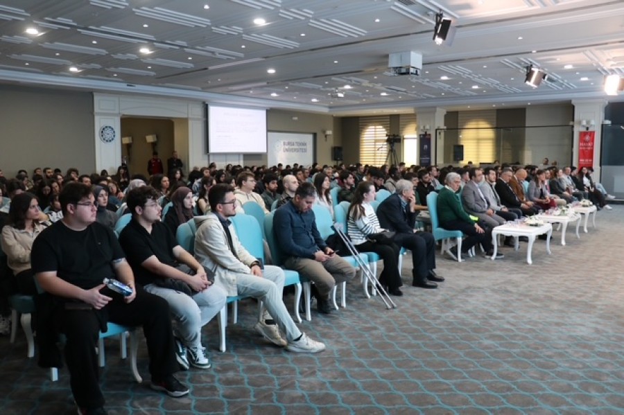 Etkinliğin sonunda Bursa Teknik Üniversitesi Rektörü Prof. Dr. Naci Çağlar, Hayat Hastanesi Yönetim Kurulu Başkanı Uzm. Dr. Ahmet Özkul'a plaket takdiminde bulundu.