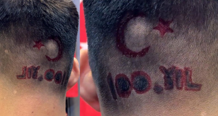 Bolu'nun Tabaklar Mahallesi'nde faaliyet gösteren berber Mehmet Kızıloğlu, Cumhuriyetin 100. yılına özel bir tasarım yapmak için gelen müşteriye talepte bulundu. Müşterinin talebi olumlu karşılaması üzerine berber Kızıloğlu, ay ve yıldız simgelerini ustura ile müşterisinin saçlarına çizdi. Daha sonra 100. yıl simgesini de müşterisinin kafasına kazıyan Kızılıoğlu, yapılan işlemlerin ardından ay-yıldız ve 100. yıl yazısını kırmızı renkte boyadı.