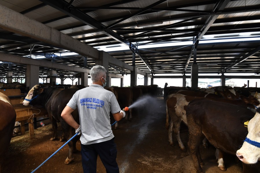 Osmangazi Belediyesi tarafından Veysel Karânî ve Geçit mahallelerinde oluşturulan hayvan satış yerleri, karasinek oluşumuna karşı her gün düzenli olarak ilaçlanıyor. Çevre Koruma ve Kontrol Müdürlüğü ekipleri tarafından yapılan çalışmalarda Dünya Sağlık Örgütü tarafından onaylı ve Sağlık Bakanlığı tarafından ruhsatlandırılmış ilaçlar kullanılıyor. Büyük ve küçükbaş hayvanların satışının yapıldığı kotralarda ilk olarak otomobil arkasına yerleştirilen ilaçlama makinesi ile çalışma yapan ekipler, ikinci aşamada ise rezidüzel ilaçlama yöntemi ile kotraların içerisi ve çevresini ilaçlıyor. Ekipler, bu yıl ilk kez kullandıkları granül formda karasinek yemlerini kurban satış noktalarının farklı noktalarına bırakarak, karasinek ve larva oluşumuna karşı kesin çözüm sunuyor. Çalışmalar hem satış yapan hayvan sahipleri hem de kurbanlık alan vatandaşlar tarafından memnuniyetle karşılandı. Belediye ekipleri karasinek oluşumuna engel olmak adına hayvan satış yerlerinde oluşan gübreleri her gün topluyor.