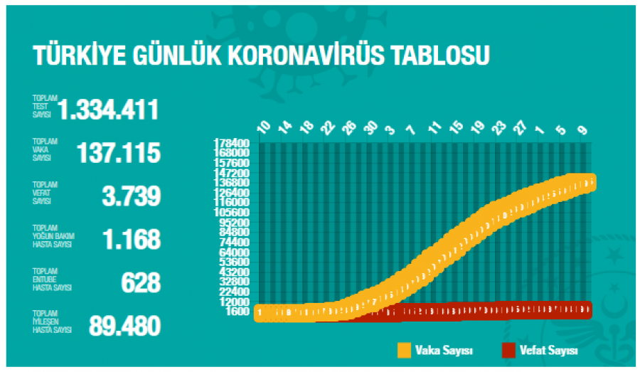 Bakan Koca yaptığı paylaşımda, "Toplam iyileşen sayısı 90 bine yaklaştı. Yoğun bakım desteğine ihtiyaç duyanların sayısındaki azalma devam ediyor. Yapılan test sayısına göre, yeni tanı konan vaka sayısında düşüş devam ediyor. Tedbiri elden bırakmayalım." ifadelerini kullandı.