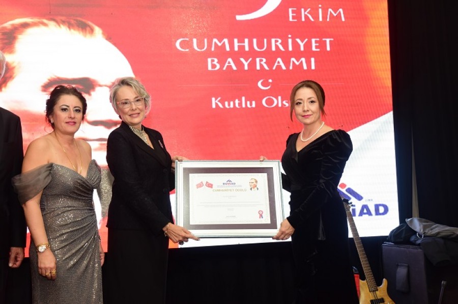 BUMİAD 2022 Yılı 'Cumhuriyet Ödülü'ne layık görülen yazar Doktor Serra Menekay ödülünü ise derneğin Yönetim Kurulu üyeleri Zarif Ayça Güler ve Filiz Güzel Şen takdim etti.