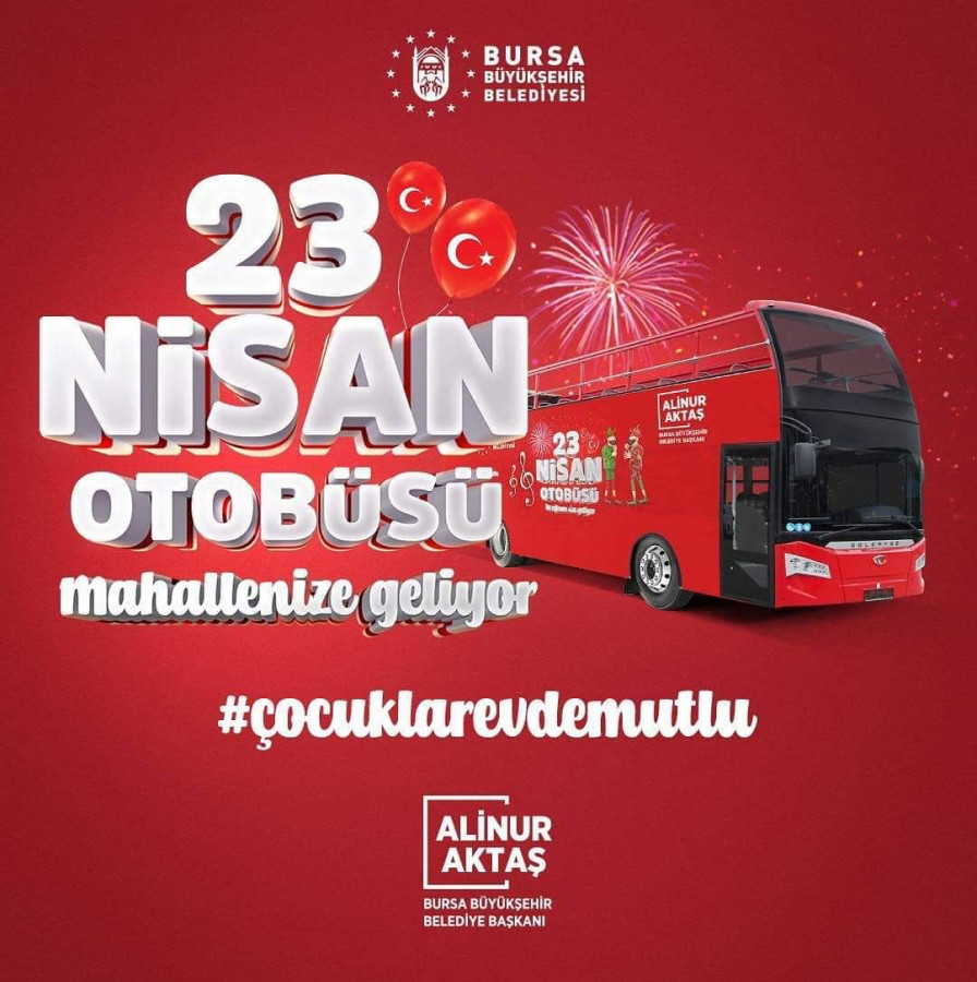 Kutlamaların 'geçen yıllardan farklı olarak' bu yıl evlere yönelik olduğunu ifade eden Başkan Aktaş, "Bursa Büyükşehir Belediyesi olarak biz de çocuklarımızın geleneksel sevincine, etkinliklerimizi onların ayaklarına götürerek, ortak olacağız. Nasreddin Hoca ve Keloğlan gibi geleneksel değerlerimiz yanında Hacıvat-Karagöz gibi yerel değerlerimiz ve bandomuz, 23 Nisan otobüsü ile mahalle mahalle dolaşarak, çocuklarımızın evlerine konuk olacak" diye konuştu.