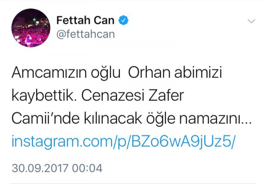 Ünlü şarkıcı Fettah Can, kuzeni olan Orhan Can'ın ölüm haberinden sonra Twitter ve Instagram hesabından bir taziye mesajı yayınladı. Fettah Can, "Amcamızın oğlu Orhan abimizi kaybettik. Cenazesi Zafer Camii'nde kılınacak öğle namazını müteakip defnedilecektir" ifadelerini kullandı.