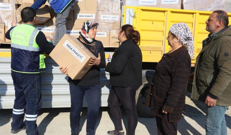 Depremin yaralarını sarmak için ilk günden beri gece gündüz demeden çalışan Bursa Büyükşehir Belediyesi ekipleri, özellikle yardımların ulaştırılması noktasında Hatay'da ayak basmadık yer bırakmıyor. Toplama merkezine tırlarla gelen yardım malzemeleri, Büyükşehir ve bağlı iştiraklerin kamyonlarına yüklenerek, Büyükşehir personeli tarafından ihtiyaç duyulan bölgelere sevk ediliyor.