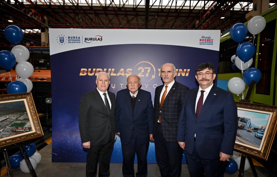 Büyükşehir Belediyesi iştiraklerinden BURULAŞ, kuruluşunun 27'nci yıl dönümünü kutluyor. BURULAŞ Ana Bina RS Bakım Atölyesi'nde düzenlenen törene Bursa Büyükşehir Belediye Başkanı Mustafa Bozbey'in yanı sıra Büyükşehir Belediyesi'nin önceki dönem başkanları Erdem Saker ve Recep Altepe, Büyükşehir Belediyesi Genel Sekreteri Doç. Dr. Ergül Halisçelik, Genel Sekreter Yardımcıları, BURULAŞ Genel Müdürü Fahrettin Beşli, siyasi partilerin temsilcileri, meslek odalarının ve sivil toplum kuruluşlarının temsilcileri ile belediye personeli katıldı. Program, BURULAŞ'ın 27 yıllık sürecini anlatan film gösterimiyle başladı. Şirketin emektar çalışanlarının da söz alarak duygularını dile getirdiği etkinlikte BURULAŞ'ın hizmetleri de kısa videoyla anlatıldı.