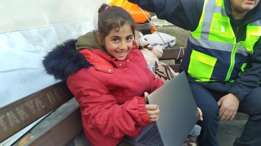 Hatay'da deprem mağduru vatandaşların yaralarını sarmak için mahalle mahalle gezerek yardımlarını ulaştıran Bursa Büyükşehir Belediyesi ekipleri, depremzede miniklerin yüzünü güldürmeye devam ediyor. Evlerinin yıkılması sonucu çadırda kalan 7 yaşındaki Melek'in bilgisayar isteğine duyarsız kalamayan Büyükşehir Belediyesi ekipleri, minik kızı ziyaret edip istediği bilgisayarı teslim ederek yüzünü güldürdü.