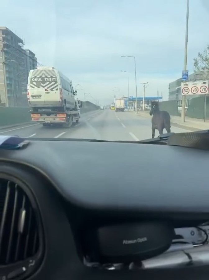 Bursa'da trafikte koşturan başıboş tay vatandaşlar tarafından kaydedildi. Adeta araçlarla yarışan tayı bir araç yan yola yönlendirmeye çalışsa da başarılı olamadı.