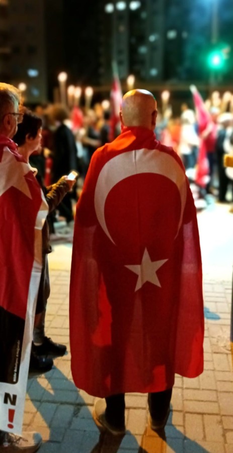 Yürüyüş, saat 19.30'da merkez Nilüfer ilçesinde başladı. Cumhuriyet'in 100'üncü yılını coşkuyla kutlayan Bursa halkı Yüzüncüyıl Mahallesi'nden yürümeye başladı.