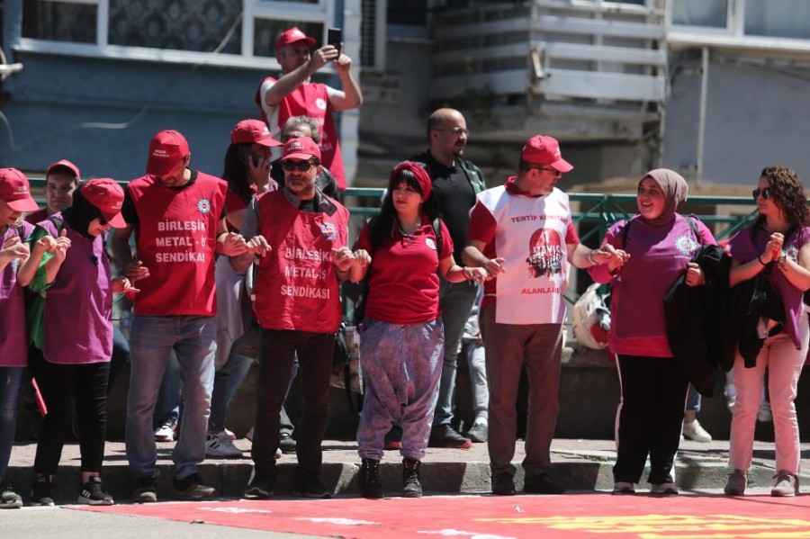 1 Mayıs'ı bazı vatandaşlar davullarla halay çekerek kutladı. Toplanmanın ardından binlerce emekçi, öğrenci, emekli Darmstad Caddesi'nden Kent Meydanı'na doğru yürüyüşe geçti. Dövizler taşıyan vatandaşlar sık sık sloganlar attı.