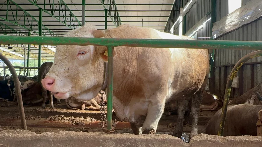 Simental ve Şarole melezi olan dev boğa, 7 ortak tarafından yaklaşık 400 bin TL'ye satın alındı. Çiftlikte 200 baş hayvan bulunduğunu söyleyen Oktay, fiyatlarda dengeli bir politika izlemeye çalıştıklarını ifade etti.
