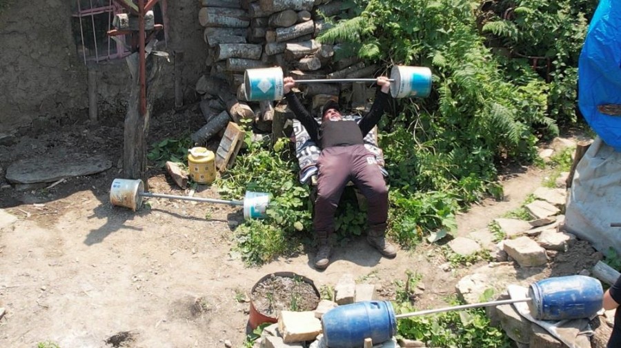 Bursa'da 10 yıldır dağda tek başına yaşayarak hayatını idame ettiren 38 yaşındaki İlhan Budak, bidonların içine beton dökerek yaptığı yaklaşık 200 kilogram ağırlıklarla antrenman yapıyor. Budak, destek sağlandığı takdirde Türkiye'yi olimpiyatlarda temsil etmek istediğini ifade etti.