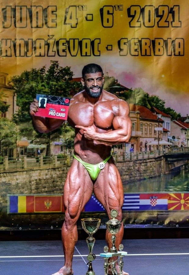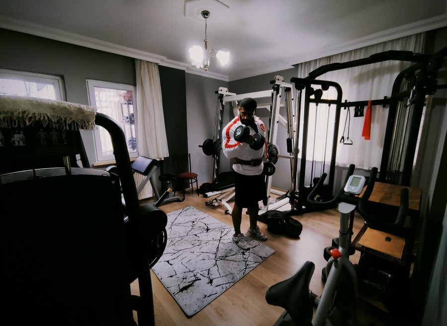 Bursalı vücut geliştirici pandemi döneminde spor salonlarının kapalı olması sebebiyle spor salonuna çevirdiği evinin 15 metrekarelik odasında çalışarak Sırbistan'da şampiyonlar şampiyonu oldu.